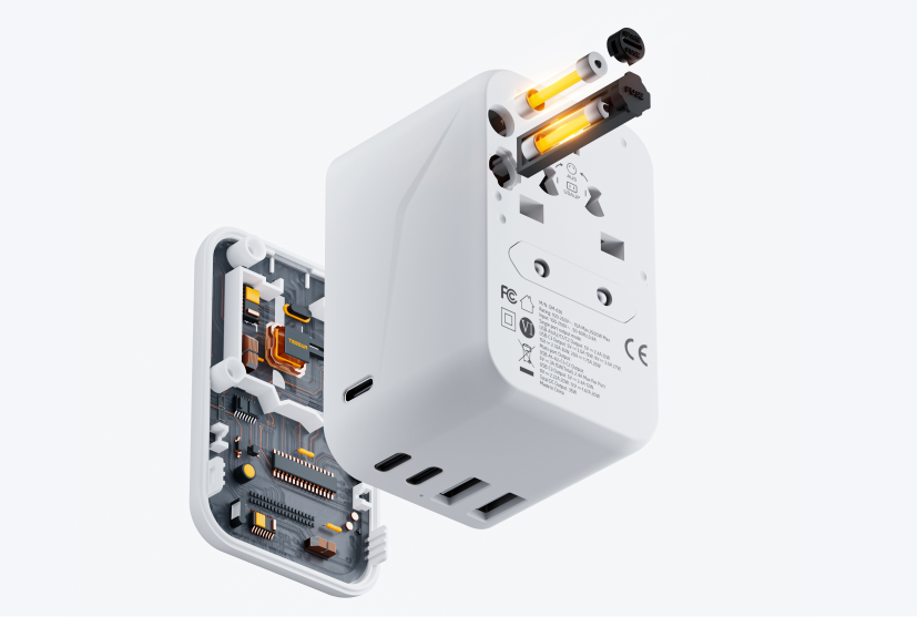 With GaN technology,the USB-ports can provide fast charging speed.